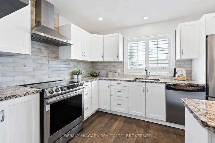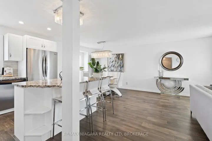 Welcome to this beautifully renovated end-unit bungalow townhome located in the highly desirable Mount Carmel neighbourhood. This rare offering features a private three-car driveway plus an attached garage, providing parking for up to four vehicles – a rare and exceptional convenience for condo townhome living. Updated from top to bottom, this home offers a bright open-concept kitchen, dining, and living area. A patio door off the dining space leads directly to your private backyard, creating an ideal setting for entertaining or simply enjoying your own outdoor space. The layout also includes two full kitchens and two full bathrooms, making it ideal for in-law living, multi-generational families, or added flexibility for extended family and guests. The fully finished basement offers comfortable additional living space while still remaining connected to the main home. Maintenance fees include lawn care, snow removal, exterior building, and water, delivering true low-maintenance living. Ideally situated within walking distance to grocery stores, coffee shops, restaurants, and everyday amenities, and just a minutes from the QEW highway , this location offers both convenience and accessibility. An exceptional opportunity for down sizers, multi-generational families or those seeking a move-in ready bungalow in a prime neighbourhood.