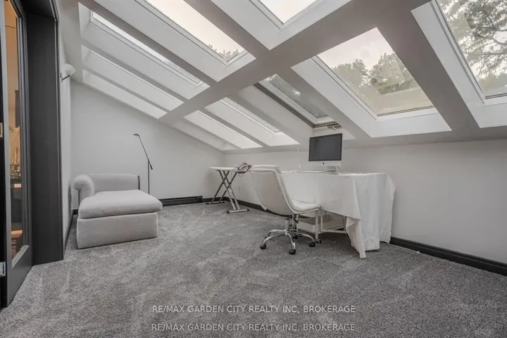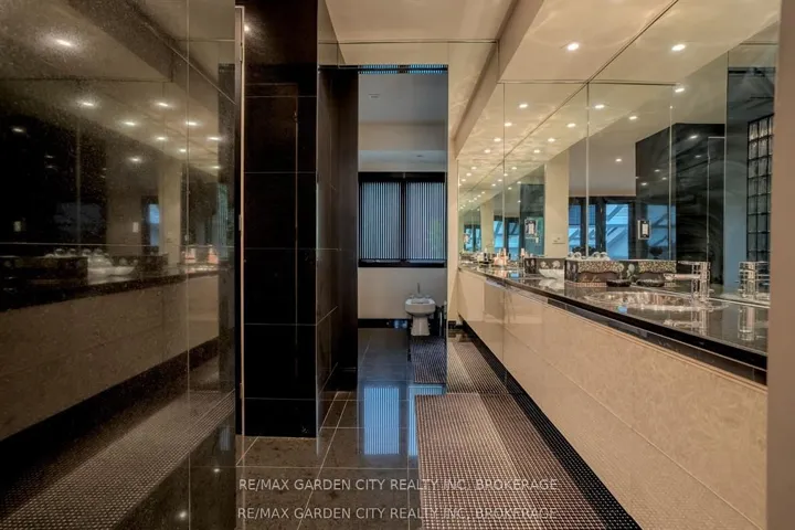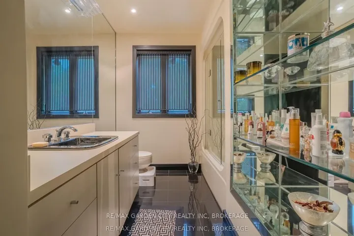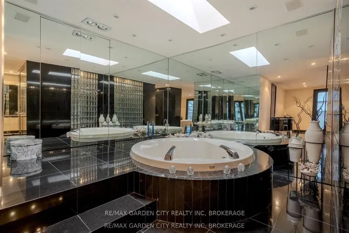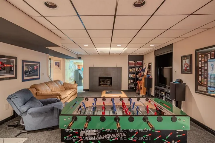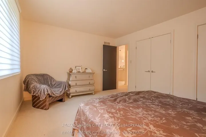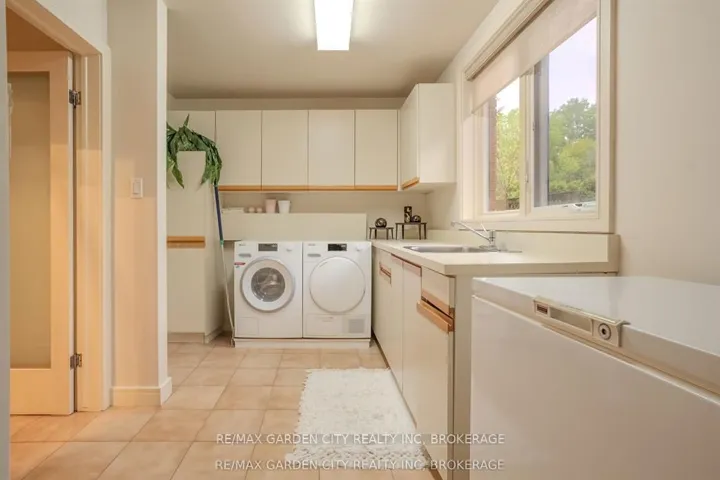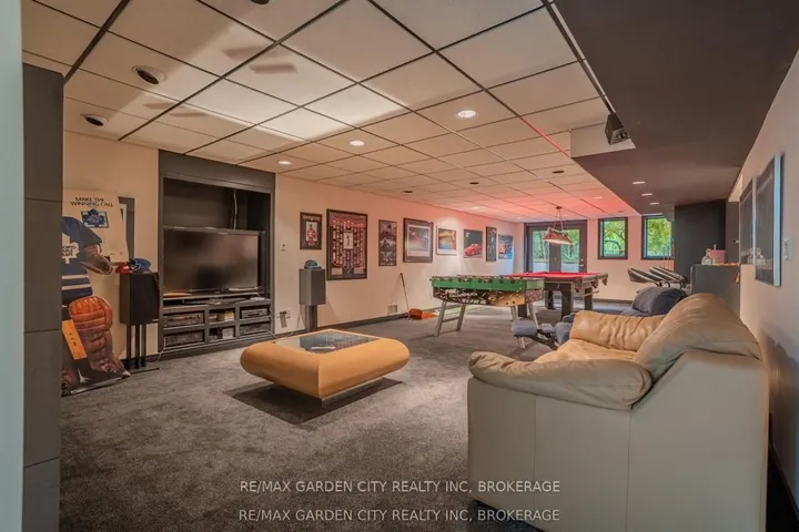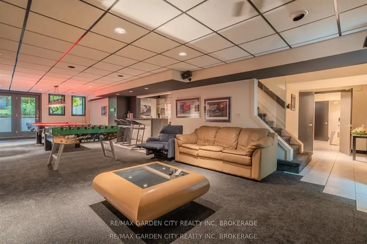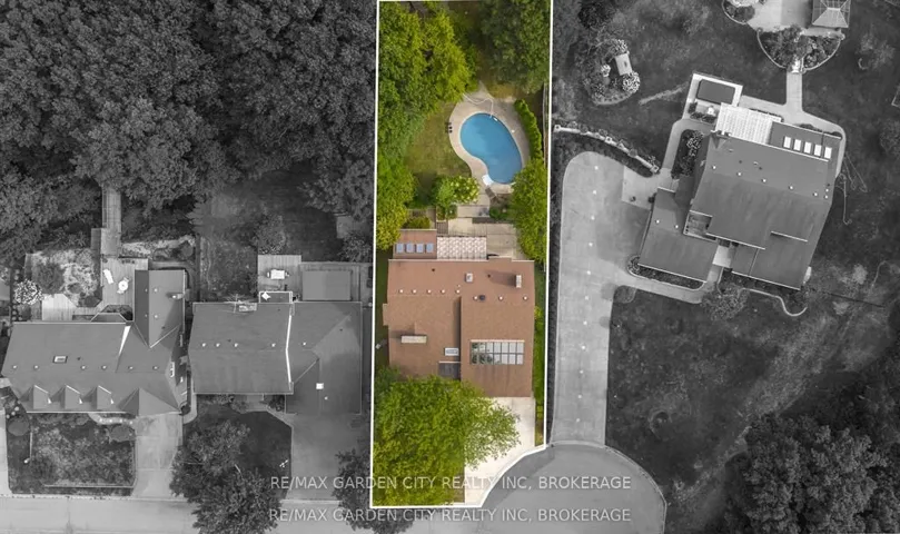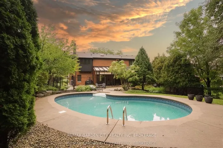 Welcome to 86 Tremont Drive, a one-of-a-kind residence on one of St. Catharines most desirable streets. Nestled near the top of the Niagara Escarpment in the sought-after south end, this prime cul-de-sac location backs onto protected greenspace with access to scenic walking trails. The private, mature lot features a backyard retreat with inground pool, patio with trellis, cedar sauna, and bocce court. This striking two-storey brick home offers over 3200 sq ft of living space, a finished 2-car garage with tile floor and drain, and a modern exterior with upgraded black windows and glass-paneled garage doors. A grand foyer welcomes you with an open-tread staircase and custom stainless-steel railing. The sunken living room with hardwood floors and two-sided gas fireplace opens to a formal dining room, while the refaced kitchen with flat-panel cabinetry and granite counters flows into a custom solarium with patio doors to the backyard. A sunken family room with gas fireplace, dramatic powder room, and laundry with garage access complete the main floor. Upstairs, three bedrooms include two secondary bedrooms with ample storage and a shared bath, plus a dramatic primary suite with custom built-ins, black granite tile, private sitting room with skylights, and spa-like ensuite with soaker tub, bidet, and walk-through dressing area. The fully finished lower level adds a rec room with gas fireplace, wet bar, walk-out to the backyard, bath, storage, and cold cellar. Designed by renowned John Kazmir, this home blends mid-century influence with bold custom features, offering a rare combination of exceptional location, architectural presence, and private outdoor oasis.