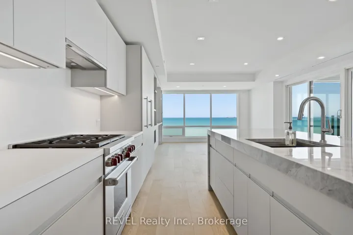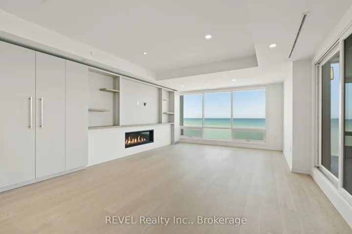 Set along the shimmering shores of Port Dalhousie, this exceptional lakefront residence is the epitome of refined coastal luxury. Showcasing breathtaking, unobstructed 180-degree vistas of Lake Ontario, the iconic Port Dalhousie Pier, Lakeside Park Beach, and the distant Toronto skyline, this is waterfront living at its most captivating. Spanning approximately 1,700 sq ft, the suite offers an elegant open-concept design curated for both everyday comfort and sophisticated entertaining. The designer kitchen is a true showpiece, appointed with premium integrated appliances including a Sub-Zero refrigerator, Wolf 6-burner gas range, Miele dishwasher, and Marvel wine fridge, all seamlessly blended with bespoke cabinetry and finishes. Exquisite custom built-ins and rich Moncer engineered hardwood flow throughout, complemented by a striking Napoleon gas fireplace. Floor-to-ceiling windows and dual walkouts lead to a private terrace with sleek glass railings, offering uninterrupted panoramic views and an unparalleled indoor-outdoor lifestyle. The primary retreat is a tranquil sanctuary, perfectly positioned to capture the lake’s beauty, and features a spa-inspired, Japanese-influenced ensuite, custom-lit built-ins, and automated window coverings with blackout functionality. A beautifully appointed second bath echoes the same elevated design with a walk-in shower, Japanese-style toilet, and custom cabinetry. Additional highlights include a versatile bonus room ideal as a guest suite, media lounge, or home office, in-suite laundry with stacking appliances and abundant storage, and full smart wiring for media and sound throughout. Residents enjoy the peace of mind of a secure, well-managed building, complete with underground parking and a dedicated storage locker. Just steps to the waterfront, boutique dining, charming cafés, and the vibrant marina, this rare offering delivers an extraordinary lifestyle in one of Niagara’s most coveted lakefront communities.