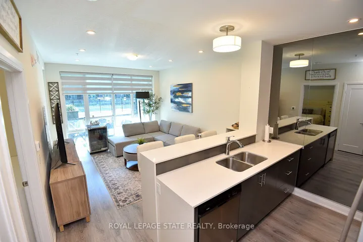 Welcome to 16 Concord Place, one of the most sought-after destinations in Grimsby On The Lake! This luxury 1 Bedroom + Den, main floor unit in the coveted Aqua Zul development, leaves a lasting impression and confidently displays pride of ownership! Featuring an open concept layout, the interior of this suite provides a custom mirrored wall in the Kitchen, beautiful Quartz counter tops with Breakfast Bar, wide plank Flooring, floor to ceiling Windows, large walk-in Closet & Ensuite privilege! Enjoy the added ease of having in-suite Laundry and relaxing or entertaining on your massive walkout Terrace, allowing quick access to the walking Path and Pool! Complete with a full 4-piece Bathroom and Pot lighting throughout, this unit is move in ready! Be a part of this fabulous community and enjoy the full resort style inspired amenities of Party room, Games & Media room, full Gym with stunning Lake views, a storage Locker, and underground Parking. Sit back, relax, and entertain in the Courtyard offering BBQ’s, outdoor Pool & Lounge area. Take advantage of this great location that puts you just steps from trendy Restaurants, Cafes, Boutique Shopping, walking Trails, and easy access to the QEW; ideal for commuters and weekend adventurers alike!