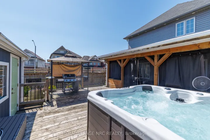 Welcome to this stunning home, built just 10 years ago and meticulously upgraded throughout. Nestled in a quiet, family-oriented neighborhood, minutes to shopping, the new South Niagara Hospital, QEW, excellent schools, parks, & walking trails, plus a short drive to the scenic Niagara Parkway tourist attractions and boasting over 2,700 square feet of finished living space, this beautiful and spacious residence features 3+1 bedrooms & 3.5 bathrooms. Flooded w/ natural light from numerous windows, this home welcomes you into a grand foyer boasting soaring ceilings.The main floor flows beautifully w a separate dining room (or home office), an open-concept living room, & Eat-in kitchen w/ granite counters & 24×36 tile flooring. A sliding door leads out to a private covered deck w built-in pot lights and a hot tub overlooking a fully fenced backyard. You’ll also appreciate the large workshop/shed for added storage or hobbies. The main level is completed by a convenient 2-p powder room w/ quartz counters & direct interior access to the single-car garage. Upstairs, 3 generous bedrooms await, highlighted by a luxurious primary suite featuring a W/I closet with custom cabinets, plus a spa-like ensuite bathroom w/a separate soaker tub, beautifully tiled shower, double vanity w/ quartz counters, & premium finishes. A bedroom-level laundry room w quartz counters & ample cabinetry adds convenience. The upper level also includes a stylish 3pc bathroom with tub/shower combo & quartz counters. The fully finished basement provides excellent additional living space, ideal for an older child, or guests. It includes a large rec room w pot lighting, a bedroom, a 3pc bathroom w/tiled shower & glass enclosure, and a 2nd laundry room equipped w washer & dryer. Outside, enjoy the charm of a covered wraparound porch, aggregate walkways, beautifully landscaped gardens, ample pot lighting & double driveway. This gem is perfect for the growing family in a desirable Niagara Falls location!