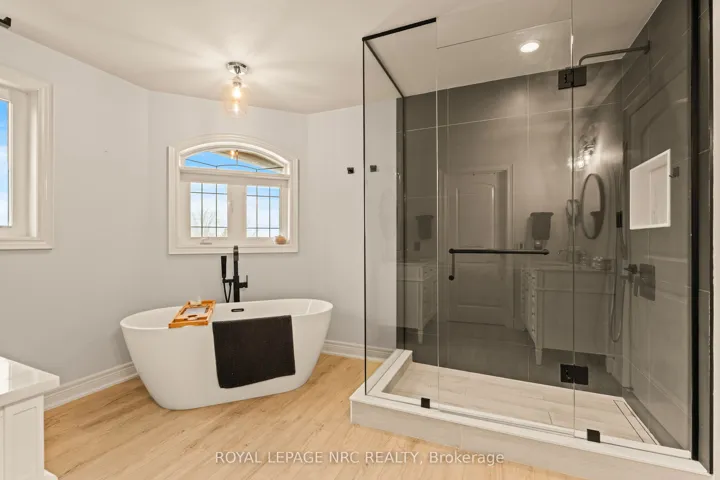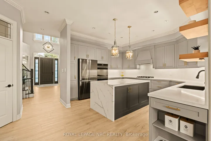 Welcome to a truly exceptional home in one of the most sought after neighborhoods in Grimsby, showcasing a generous open-concept main floor, thoughtful design, high-end upgrades, and impressive outdoor entertaining space. Close to all conveniences and great schools! From the moment you arrive, the exposed aggregate driveway and striking brick-and-stucco exterior set the tone. Step inside to a breathtaking two-storey front entrance with a floor-to-ceiling accent wall. At the heart of the home is a show-stopping chef’s kitchen featuring quartz countertops, premium Kitchencraft cabinetry, built-in appliances, a double oven, and custom built-ins – perfectly designed for both entertaining and everyday living. The open-concept layout flows into spacious living areas, 10 foot high ceilings, highlighted by three gas fireplaces (one on the lower level). Upstairs offers four generously sized bedrooms, including a luxurious primary retreat with walk-out balcony and spa-inspired ensuite. Convenient upper-level laundry adds everyday practicality, while a second laundry area is located in the finished basement. The fully finished lower level (with spray foam insulation) expands your living space with a large family room, wet bar, additional bedroom, and a 3-piece bath, separate entrance – ideal for guests, teens, or multigenerational living. Step outside to your private backyard oasis: a saltwater pool with waterfall feature, new pool pump and motor ,fresh liner, and a brand-new Cal Spa hot tub. Entertain all summer long with dual gas BBQ hookups, ceiling speakers outdoors, and a rare outdoor bathroom complete with shower and vanity. With 3,885 sq ft above grade (with additional finished lower level), a double car garage plus parking for four, this is a rare opportunity to own a move-in-ready home that truly delivers on comfort and everyday luxury