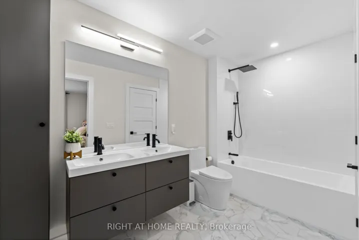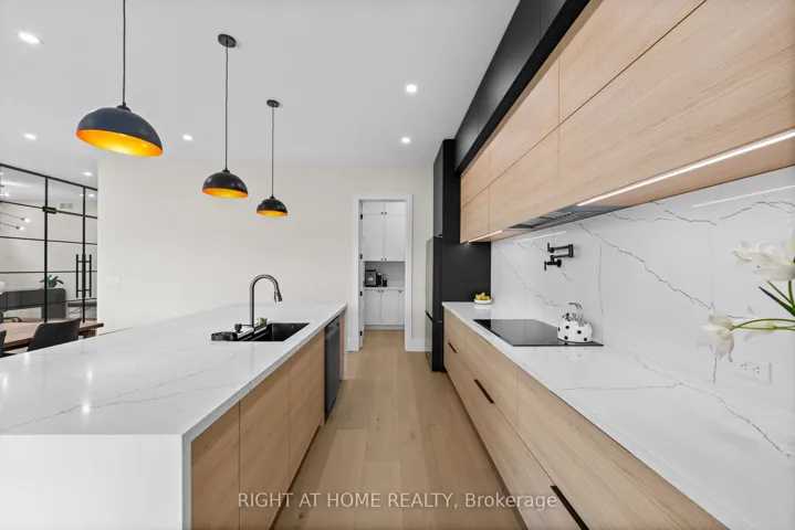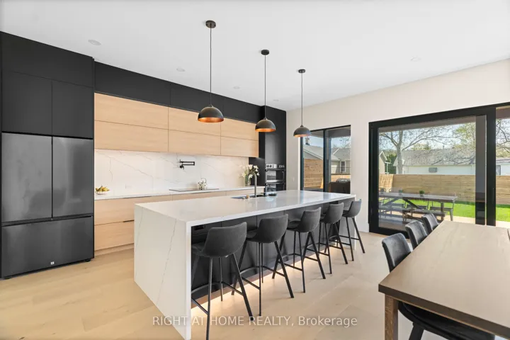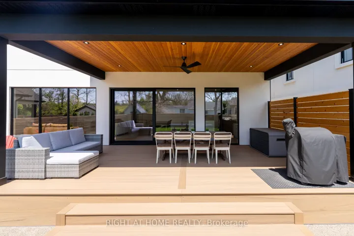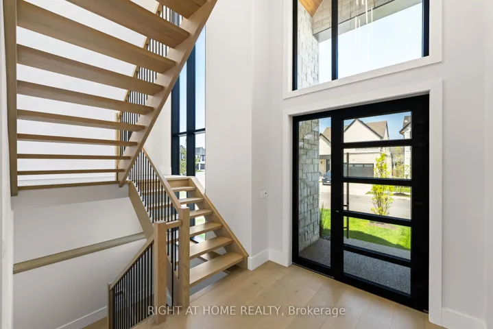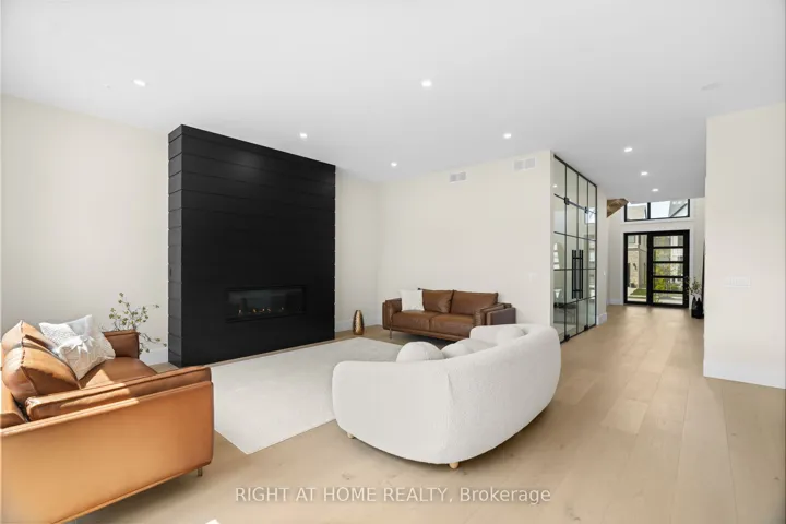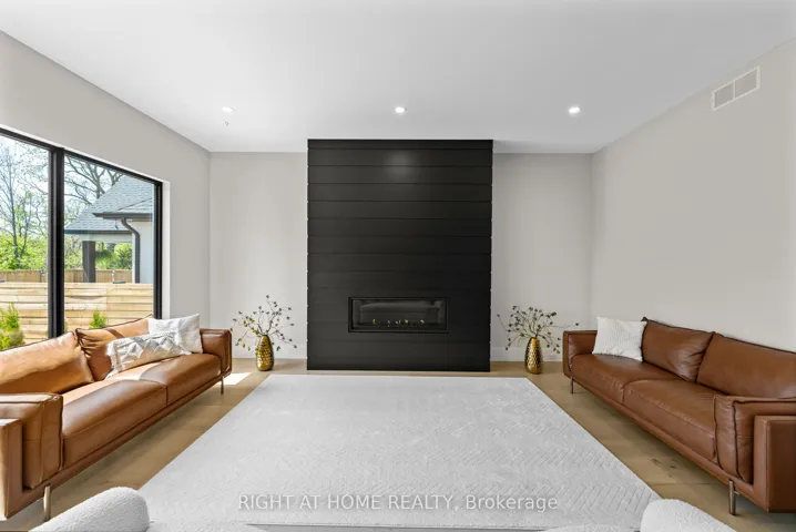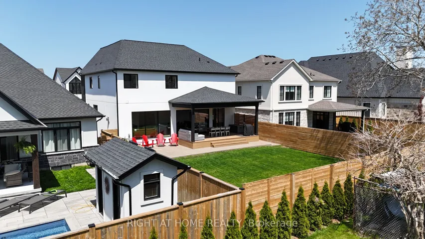 Welcome to 102 Millpond Rd, a stunning custom built home offering over 4,300 sq ft of luxurious living in the heart of prestigious St. Davids. The striking exterior blends stone, sleek glass, hardie board, stucco & a concrete driveway with exposed aggregate – all creating a clean, upscale authentic with lasting durability. Step inside to discover a modern open-tread staircase, 10-ft ceilings, wide-plank engineered hardwood flooring & European style tilt-and-turn windows. The designer kitchen is the showpiece with premium built-in appliances, a 10-ft quartz waterfall island, seamless slab backsplash, & a walk-in pantry with built-in cabinetry. An oversized sliding door opens to a large covered composite deck with spectacular vineyard views, a lower patio, in-ground irrigation & a fully fenced, professionally landscaped yard – perfect for entertaining or serene relaxation. Main floor highlights include a bright dining & living area with a chic, minimalist gas fireplace, private office enclosed by a floor-to-ceiling glass wall, a laundry room with integrated storage & convenient access to the double car garage. Upstairs, the primary suite offers a spa-like retreat with a soaker tub, oversized walk-in rainfall shower, dual vanity & a walk-through closet complete with custom shelving. Three additional bedrooms each feature their own ensuite access, providing comfort and privacy for family or guests. The fully finished basement boasts a sprawling rec room with show stopping 100-inch electric fireplace with a granite stucco surround, luxury vinyl flooring, a 5th bedroom & a stylish full bathroom. Ideally located just minutes from local coffee shops, award-winning wineries, top-rated golf courses & the charm of Old Town Niagara-on-the-Lake.