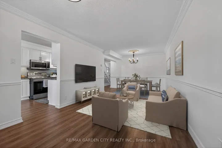 STUNNING 3 BEDROOM, 2.5 BATH, FREEHOLD TOWNHOME ON QUIET COURT backing onto Parkland. This spacious home is beautifully finished top-to-bottom. Welcoming foyer leads to gracious living room/dining room with crown moldings throughout. Fabulous kitchen with abundant cabinetry & appliances. Sliding doors from kitchen lead to serene backyard oasis with expansive covered deck, fenced yard with park & escarpment views. Large primary bedroom suite with 4-piece ensuite bath & walk-in closet. Finished lower level with electric fireplace features a large space for entertaining & relaxation. OTHER FEATURES INCLUDE: 2 1/2 baths, new central air unit 2024, all window treatments, new microwave/fan & premium flooring 2021, new garage door 2023, washer/dryer, roof shingles & furnace replaced, new dishwasher 2025. Steps to park, hospital & conveniences. This home offers a wonderful lifestyle in an idyllic setting! Some photos virtually staged.