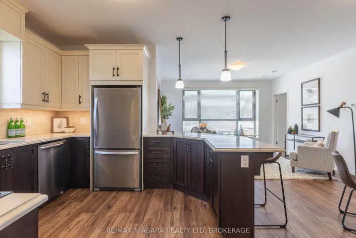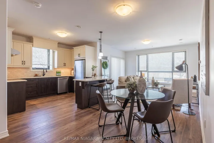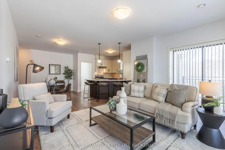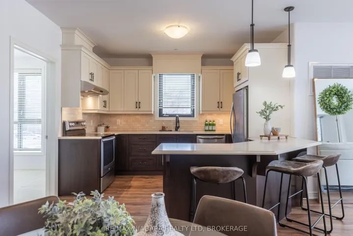 Welcome to 379 Scott Street in the highly sought-after North End of St. Catharines! Suite #209 is one of the building’s largest at 1,205 sq. ft.. From the moment you step through the door, you’ll be greeted by a warm and inviting foyer that leads into the open-concept main living space. Bathed in natural light from North West/West-facing windows, the living room, dining area, and kitchen are seamlessly connected.The kitchen is both functional and stylish, featuring ample cabinet storage, a beautiful backsplash, under-cabinet lighting, island seating, and an under mount double sink positioned perfectly beneath the west-facing window. Thoughtfully designed wood cabinetry maximizes space while maintaining a cohesive look throughout. Patio doors off the living room open to a balcony, perfect for relaxing or entertaining.The primary bedroom is bright and spacious, with a generously sized window and a walk-in closet offering wardrobe space on both sides, followed by a private 4-piece ensuite bathroom.The second bedroom is versatile, ideal as a bedroom, office, or den. Another 4-piece bathroom is conveniently located nearby and also houses the stackable washer and dryer for in-suite convenience.This suite blends space, light, and thoughtful design, making it a truly exceptional place to call home. *** BONUS*** CONDO FEES ARE PAID IN FULL UNTIL DECEMBER 2026