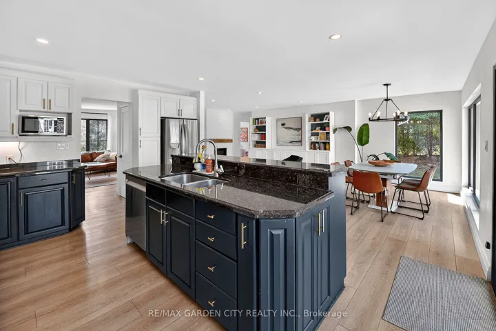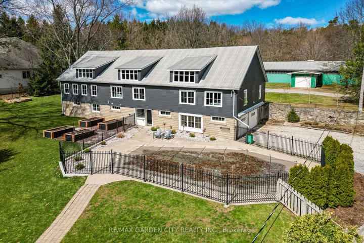 Located in Ridgeville in the heart of Pelham, this 2.5 acre property features everything one could ask for and more. The main house Almost 3000 sq.ft. of living area that has been thoughtfully updated throughout. Updated exterior, all new windows, main floor laundry with ample counter and cupboard space and 2 pc bath right around the corner. Open concept kitchen/family room with fireplace and magnificent views to the back yard add to the charm of this home. Step up to the remodeled principal suite with cathedral ceiling, amazing stone fireplace, large windows, sky light, walk through closet, new ensuite bath with stand up shower and soaker tub. Lower level Rec room with great natural light, features gas fireplace, wet bar, wine fridge; adds even more usable space. Three additional bedrooms, a 4 pc bath, 1.5 car attached garage, municipal water and large finished crawl space wrap up all the many features of this home. Secondary Dwelling: Located in the renovated barn is a most amazing second home that could be used as in-law suite or could generate added income. The main floor features large bright living room, kitchen, dining area, principal bedroom, 4 pc bath and laundry room. Upstairs has a rec room, 2 additional bedrooms and a 2 pc bath. The Property: Over 2.5 acres includes fenced area with large patio, inground concrete pool with new liner and Ryno cover. New septic system, invisible dog fence covering the entire 2.5 acres. Outside parking for 10+ cars, room for all your toys like RV, boat, etc. Main barn has lower storage and workshop area, upper floor has access for vehicles and secondary suite. Rear barn rounds out the over 10,000 sq.ft. of storage area, and is used primarily as a car storage area that generated over $25,500 in income in 2025. Behind the back barn is a wooded area great for walks and cozy evenings sitting around the firepit. This property is not just a place for multi-generational living it’s a lifestyle. Make This Your Niagara Home!