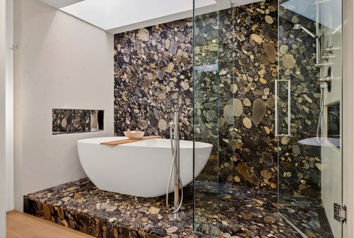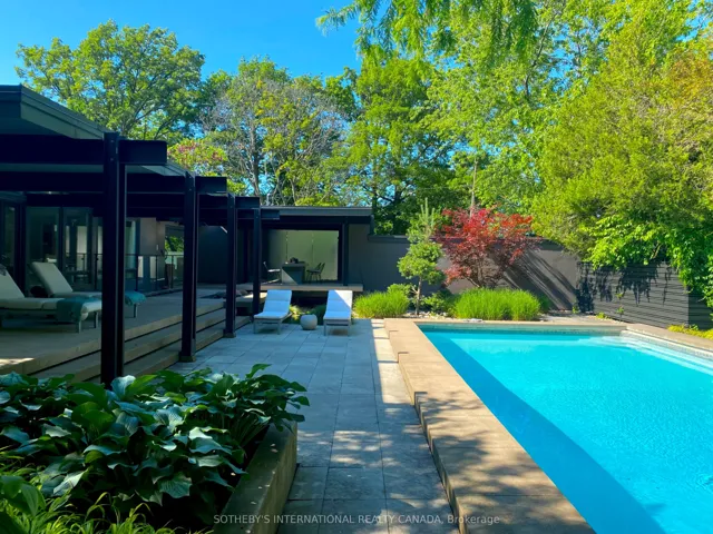 Architecturally relevant and thoughtfully reimagined, 105 Marsdale Drive is an inspiring mid-century modern “Butterfly Roof” bungalow, offering nearly 3,000 sq ft of main-level living in one of South St. Catharines’ most highly sought-after neighbourhoods. Originally designed in 1958 by Massey Award-winning architect James E. Secord, with a later addition influenced by renowned architect Ron Thom, this home blends preserved architectural character with modern updates. Features include floor-to-ceiling glass, clean horizontal lines, custom rosewood built-ins, and four fireplaces (3 wood-burning, 1 gas). The open-concept layout flows seamlessly through the living, dining, and kitchen areas, creating an ideal space for both everyday living and entertaining. The private backyard oasis is a standout feature, professionally landscaped and designed for resort-style living. Highlights include a Swenker concrete pool, hot tub, outdoor BBQ kitchen, pool change room, low-voltage landscape lighting, and a programmable in-ground sprinkler system. The fully finished lower level offers a self-contained suite with a separate entrance, two bedrooms, a full kitchen, spacious living areas, and a full bathroom – ideal for multigenerational living, growing teenagers, guests, or a nanny/in-law setup. Additional features include an original indoor cedar-lined sauna with shower, extensive storage, cedar-lined closets, and mature award-winning landscaped gardens providing exceptional privacy. Located just steps from the Niagara Escarpment, Bruce Trail, Ridley College, the Pen Centre, and some of Niagara’s top wineries and Michelin star restaurants. A rare opportunity to own an architecturally significant mid-century modern home with exceptional lifestyle flexibility in a prime location.