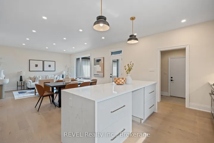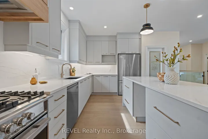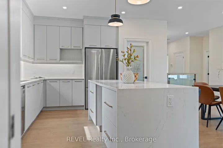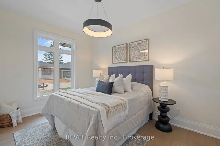 Welcome to 8 Accursi Street, a beautifully finished bungalow townhome in one of Pelhams most sought after neighbourhoods. Built by Centennial Homes, this freehold property features 2 bedrooms, 2 bathrooms, and a bright open concept layout perfect for everyday living. The main floor offers hardwood flooring, high ceilings, and a modern kitchen with quartz counters, custom cabinetry, walk in pantry, and premium Fisher & Paykel appliances. The spacious living area is accented with clean lines and a sleek glass railing. The primary bedroom includes a private ensuite and walk in closet, while the second bedroom offers flexibility for guests or a home office. The laundry room includes built in cabinets and a sink for added function. Outside you’ll find a double garage, finished driveway, and in ground sprinkler system. Just steps to parks, golf, and local amenities, this is low maintenance living in a quiet, upscale community. Make this home yours