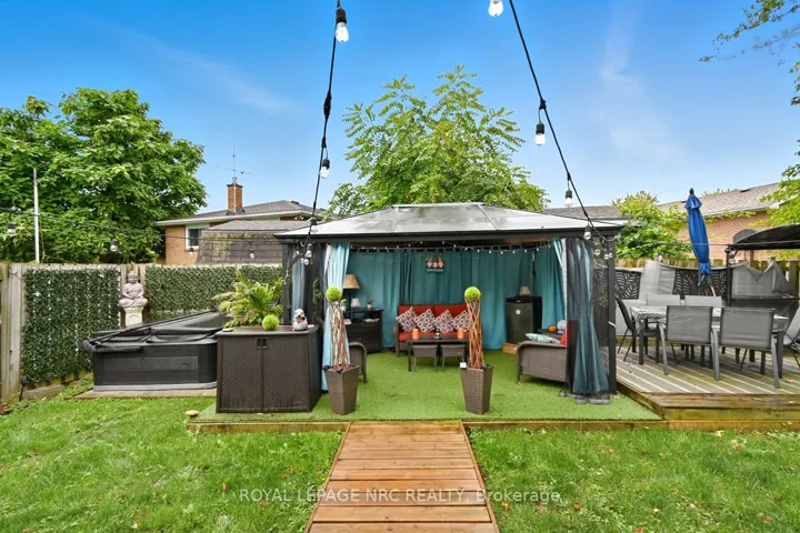 Welcome to this stylish and spacious 2-storey home, perfect for families or anyone looking for comfort and convience. This home exudes pride of ownership. 3 bedrooms up and one in the basement, 4 bathrooms, one being the master BR ensuite, a finished basement with laundry, office, storage space, bedroom, extra storage under the stair landing. This home offers over 200 sq. ft. of thoughtfully designed living space including a huge MF family room addition with a gas fireplace, 3pc bath and patio doors to the fenced in backyard with gazebo and hot tub (5 years old). The main floor also features a dining room, office/pantry, modern kitchen built in 2015 with quartz counter tops, an island breakfast bar, built-in dishwasher, s/s appliances and another main floor family room with a wood burning fireplace. Let’s go upstairs! As we go up the stairs the back wall has this custom design storage unit that can accommodate many items. The second floor has the large master bedroom with a private ensuite and plenty of closet space, 2 extra bedrooms that are both good sizes and an updated 4 pc bathroom with skylight. The doublewide interlocking driveway leads you to the 1.5 attached garage with garage door opener and the walkway to the front entrance of the home. This home is situated in a desirable Southend location near highway access, shopping, Costco, Niagara Square, Golf courses, schools, trails, parks, restaurants and public transit. HI-EFF FURNACE 2010, C/A 2010, HWT RENTAL 2021, WINDOWS 2014-2015, ROOF 2014, 3 BATHROOMS DONE OVER 2015, KITCHEN 2015, HOT TUB 5 YEARS. Don’t miss your chance to call this beautiful property home!!!