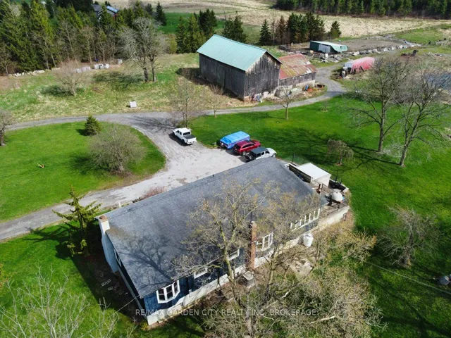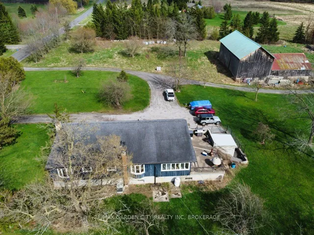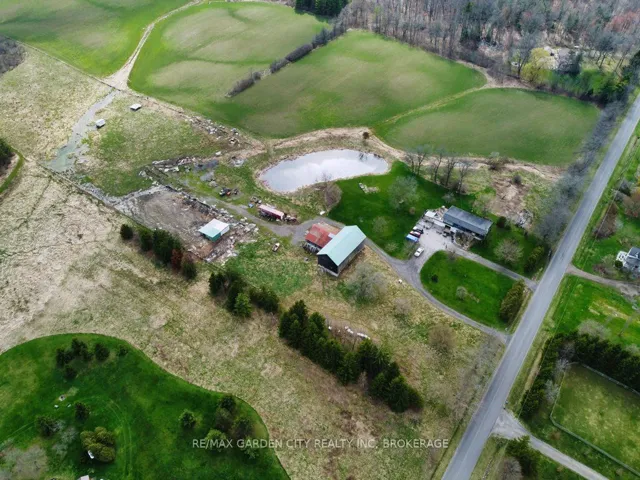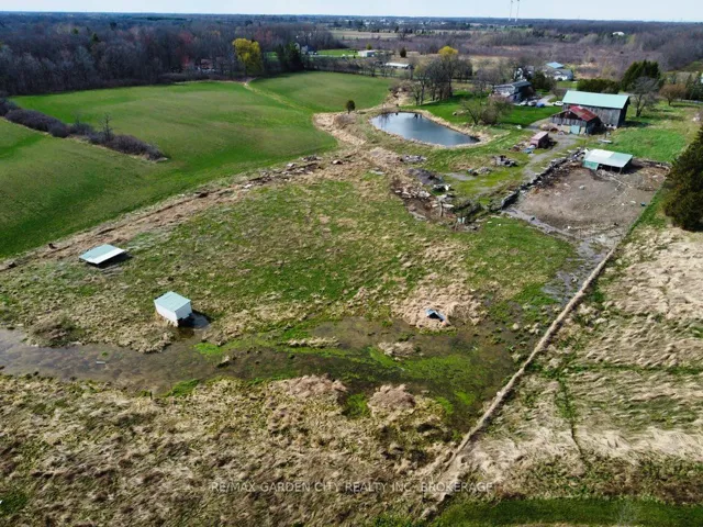 Over 23 Acres of private country living, yet only minutes to all amenities and the QEW. Picturesque property with rolling fields, tree lines and pond. Suitable for many agricultural uses. Older 2 storey board and batten barn with hand-hewn beams in need of some TLC for those wedding venues. Circular drive with a solid open concept bungalow built in the 60’s. Attached double car garage addition with full walkout basement, rec room, 3pc bath, wine cellar, mudroom with sink and counter. Two bedrooms on the main floor, the master with 4pc ensuite privileges. Open concept living and dining area with maple hardwood flooring, Freshly renovated kitchen with granite counters and island, built ins, vaulted ceiling with pot lights, open to a massive family room, bright windows throughout, patio doors to a private backyard patio overlooking your pond and property. This one of a kind property could be an unbelievable homestead with some imagination and TLC.
