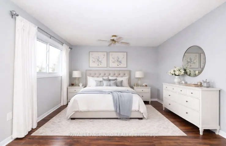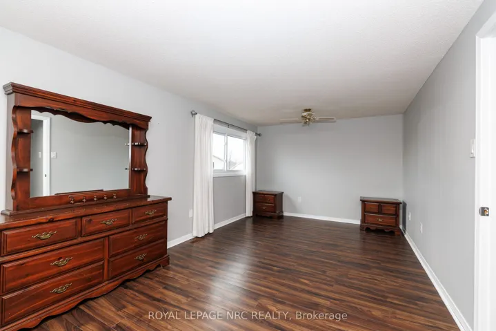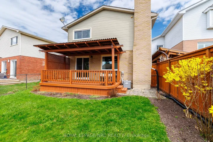 Welcome to this absolutely immaculate & lovingly maintained home, proudly owned by the same family for nearly 40 years. Offering space, this property delivers exceptional comfort, space, & pride of ownership throughout. Ideally situated on a quiet cul-de-sac in a family-friendly neighborhood, this home is conveniently located close to excellent schools, parks, shopping, amenities, & provides easy access to Highway 406 & bus routes to Brock University. The home welcomes you w/a spacious double driveway accommodating up to four vehicles, along with an attached single-car garage featuring inside entry. Step inside to a bright foyer w/soaring ceilings that extend to the 2nd floor. The main floor offers a functional layout, featuring a stylish 2-piece bathroom with quartz countertops, a spacious living room highlighted by a cozy wood-burning fireplace w/a beautiful brick mantle, and a separate dining room with sliding doors leading to a covered deck & fully fenced backyard. The eat-in kitchen offers gleaming quartz countertops, ample cabinetry, & a charming dinette area complete with built-in storage. Upstairs, you’ll find three generously sized bedrooms, including a primary suite with an oversized walk-in closet. The upper-level 5-piece bathroom features granite countertops, a double vanity, a linen closet, a tub/shower combination, and a skylight that fills the space with natural light. The fully finished basement provides additional living space w/a large recreation room, a spacious laundry/utility room w/newer tiled flooring, & a separate storage room with bathroom rough-in-offering excellent potential for future customization. Updates include an owned hot water heater (7 yrs), furnace (7 yrs), and central air conditioning (1.5 yrs), Roof 2015, washer/dryer 2025, kitchen appliances 2021, laundry room 2025. This is an opportunity to own a meticulously cared-for home in a prime location-perfect for families seeking space, comfort, and long-term value.