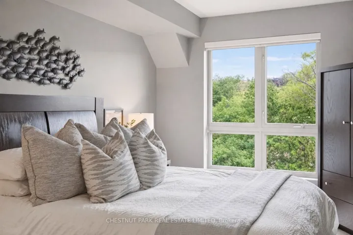 Welcome to 56 Kerman Avenue in the heart of Grimsby. This exceptionally spacious 1,126 sq ft top-floor two-bedroom, two-bathroom condo offers a bright, airy layout with elevated views and an abundance of natural light. Positioned on the top level, the unit provides added privacy and a quiet living experience within this well-maintained, sought-after building. The functional layout features a generous living and dining area, ideal for both everyday living and entertaining, with direct access to a private balcony overlooking a peaceful forested backdrop-an ideal setting to unwind. The primary bedroom includes a full ensuite, while the second bedroom and additional bathroom offer flexibility for guests, a home office, or family living. In-suite laundry adds everyday convenience. This pride-of-ownership building is known for its quiet atmosphere and ample visitor parking. The unit includes an exclusive underground parking space. Condo fees include water, cable TV, and high-speed internet-adding exceptional value and ease of living. Ideally located just minutes from downtown Grimsby, parks, shopping, wineries, and with quick access to the QEW, and in close proximity to West Lincoln Memorial Hospital, this is an excellent opportunity to enjoy spacious, low-maintenance living in a highly desirable and connected community.