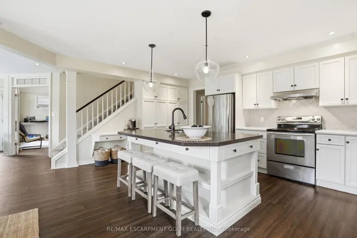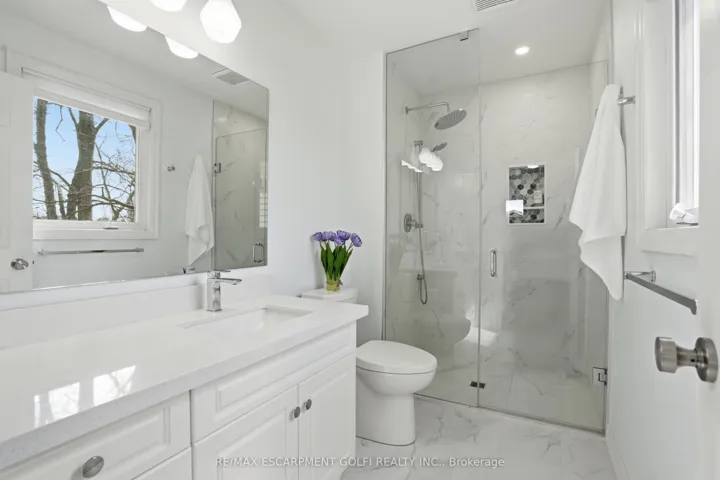 Tucked away on a quiet street in the highly sought-after north end of St. Catharines, this distinctive, custom-built home offers a rare blend of architectural character, generous space, and a private, nature-filled setting with no rear neighbours. Thoughtfully designed, the main level features expansive principal rooms with soaring ceilings, large windows, and an abundance of natural light throughout. The formal living room is anchored by a gas fireplace, while the spacious dining area provides the perfect setting for hosting. The kitchen is both functional and inviting, complete with a large island, ample cabinetry, and seamless sightlines to the family room and backyard. A private main floor office or den offers the ideal work-from-home setup, tucked away from the main living areas. Upstairs, three generously sized bedrooms are complemented by a convenient second-floor laundry room. The primary suite is a bright retreat with a walk-in closet and updated ensuite, along with access to a charming balcony overlooking the gardens. The fully finished lower level adds exceptional versatility, featuring a large family or recreation space, a fourth bedroom with its own ensuite, and ample storage. Surrounded by mature landscaping and lush greenery, the outdoor space offers privacy and tranquility, ideal for relaxing or entertaining. Recent updates include windows (2023), flooring, bathrooms, and exterior improvements, ensuring a move-in ready experience. Ideally located close to parks, schools, shopping, and quick QEW access, this home offers the perfect balance of lifestyle, convenience, and timeless design.