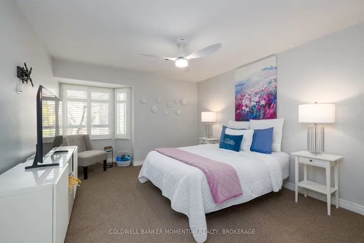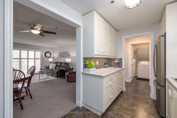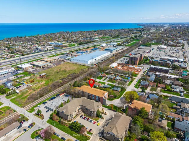 Updated and spacious 2 bed, 1 bath condo with in-suite laundry located on a quiet cul-de-sac in the heart of Grimsby. Featuring a beautiful kitchen with sleek quartz countertops, tiled backsplash, under-cabinet lighting, and 4 modern stainless steel appliances. The open concept living room/dining room is a great space for entertaining and has a sliding patio door that leads to a private balcony. Both bedrooms are generously sized, with the primary bedroom offering a huge walk-in closet. Large 3 pc bathroom with walk-in shower. California shutters on all windows. A standout feature is the full in-suite laundry room with cabinetry for extra storage. Set in a well-maintained 3 storey building with secure entry, elevator, bike storage, and an assigned parking space (exclusive use of space #5), this home is ideally located within walking distance to shops, restaurants, churchs, schools, parks, and trails, including the Forty Mile Creek Trails and Fifty Point Conservation Area. Quick access to the QEW. Enjoy this ideal investment and lifestyle.