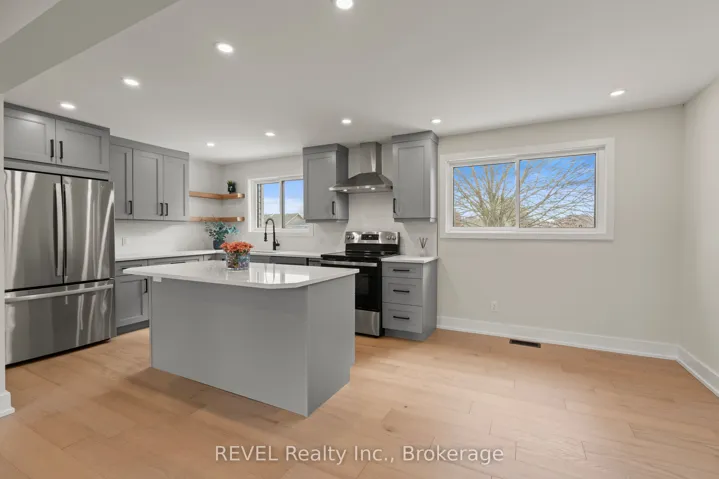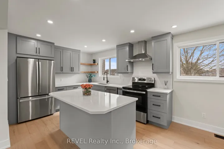 Welcome home to style and standout upgrades in the heart of Fonthill. This beautifully updated sidesplit delivers the perfect blend of comfort and functionality, all set on a deep, impressive lot in one of the region’s most desirable and fast-growing communities. Inside, you’ll find three generously sized bedrooms, including one with ensuite privilege, and two gas fireplaces that add warmth and character. One anchoring the inviting living room and another creating a cozy vibe in the lower level rec room. The stunning kitchen is the heart of the home, featuring an island with quartz countertops for entertaining, or everyday family life. Unwind in the luxurious, oasis-like 5-piece main bath, professionally upgraded for spa-level relaxation, while a convenient 3-piece bathroom on the ground level, sits perfectly beside a spacious laundry room giving you access to the rear yard, designed with real life in mind. Outside, the home continues to impress with a large, deep lot, steel roof, a massive shed for storage or hobbies, an attached two-car garage, and parking for up to six vehicles in the driveway. Located in family-friendly Fonthill, you’re just minutes from great schools, the library, the Meridian Community Centre, community events, and easy highway access to larger cities. This is a home that checks all the boxes: professionally upgraded, thoughtfully laid out, and perfectly positioned for modern family living. Updates in 2025 include: A/C, on demand water heater, windows, int/ext doors, soffit, fascia, eavestrough, siding, kitchen/kitchen appliances, engineered hardwood, carpet in basement, custom steel railing, custom shelving and mantel, 3 pc and 5pc bathrooms, tile, entire house was painted; furnace 2015