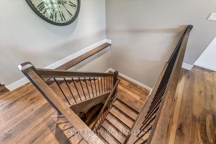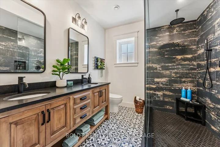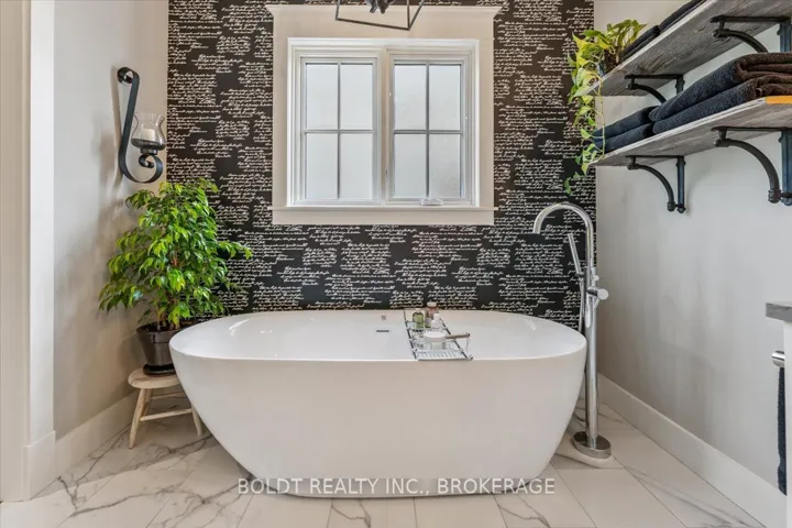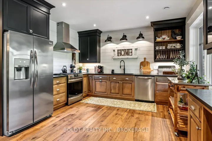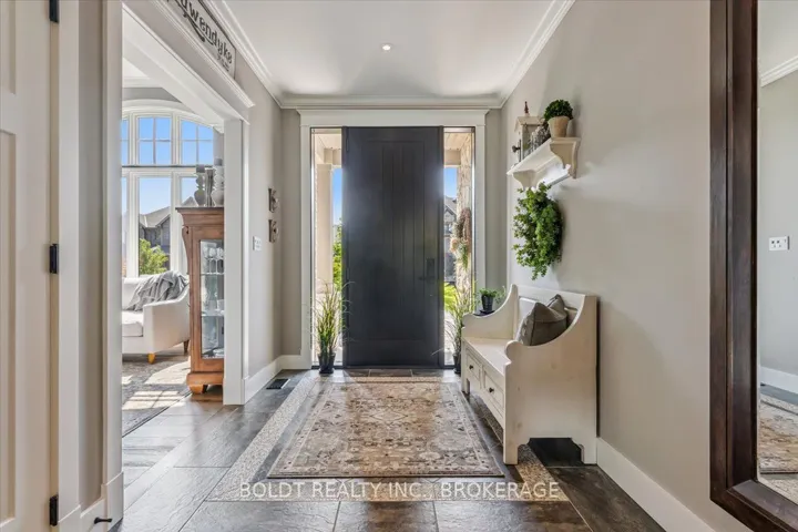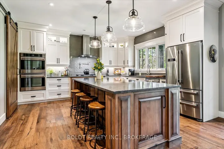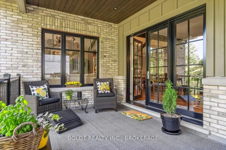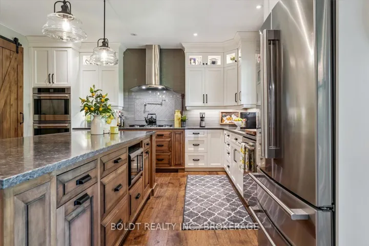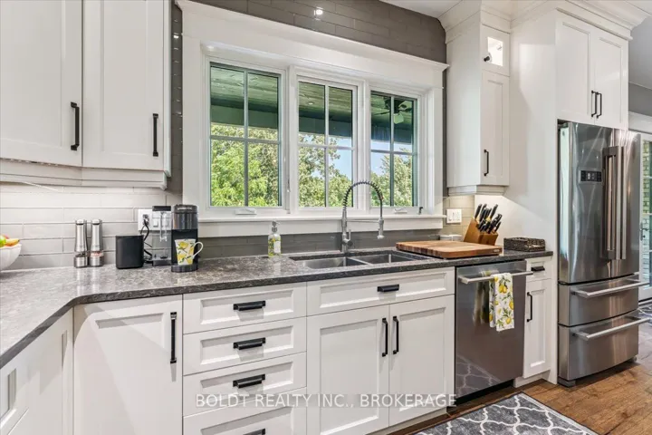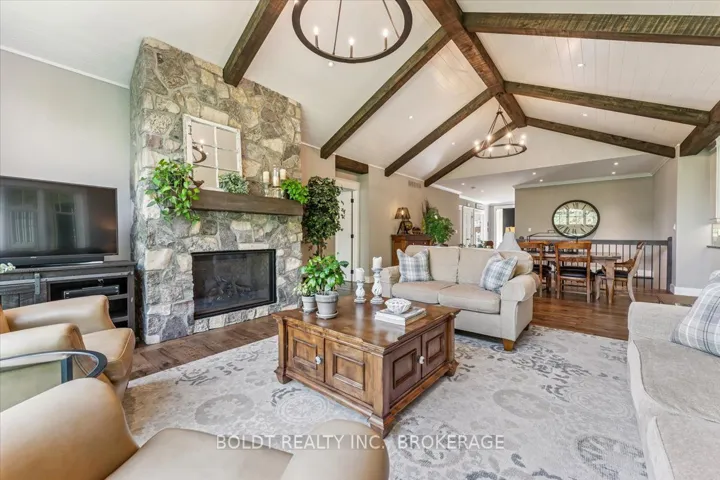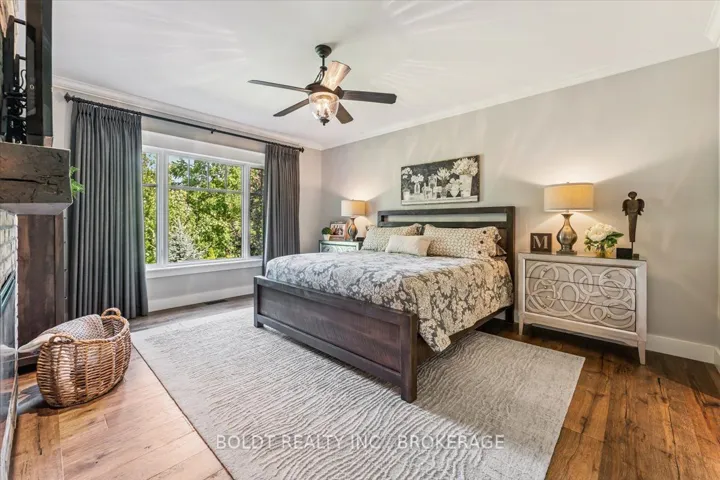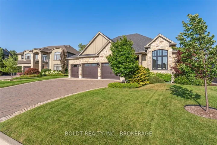 Custom Bungalow in Prestigious Lookout Point.This exceptional home is nestled in one of Fonthill’s most desirable neighbourhoods, is truly a masterpiece of thoughtful design and timeless elegance featured in Our Homes Magazine. Lovingly created by the owners and brought to life by Nauta Home Designs, every detail has been carefully curated for luxury, comfort, and functionality. Step into the great room and be immediately captivated by the vaulted shiplap and beamed ceiling, stunning stone gas fireplace, and a wall of windows framing breathtaking views of mature coniferous and deciduous trees changing beautifully with every season.The gourmet kitchen is the heart of the home, featuring a grand island, spacious dining area, and seamless access to a covered porch perfect for entertaining. A walk-in pantry and generous cabinetry provide ample storage while maintaining a clean, upscale look. The primary suite is a peaceful sanctuary with a fireplace, walk-in and double closets, and a spa- like ensuite complete with a large glass shower and luxurious soaker tub, overlooking serene backyard views. The front room, currently used as a parlour, easily converts to a main-floor bedroom with its double closet, and full bathroom just steps away. The spacious main-floor laundry adds everyday ease. As you descend to the fully finished lower level, you’re greeted by soaring 9′ ceilings and another beautifully appointed great room with stone fireplace and ceiling beams that mirror the upper levels elegance. This level also boasts a full second custom kitchen crafted by the same cabinetmaker, along with a charming dining area framed by a custom brick and stone accent wall evoking the feel of a rustic Italian villa. Garden doors open to a covered porch and large patio area, complete with a gas BBQ line an entertainers dream. Two generous bedrooms and a stylish full bathroom with a double vanity and spacious glass shower complete this level, making it ideal for extended family, guests.