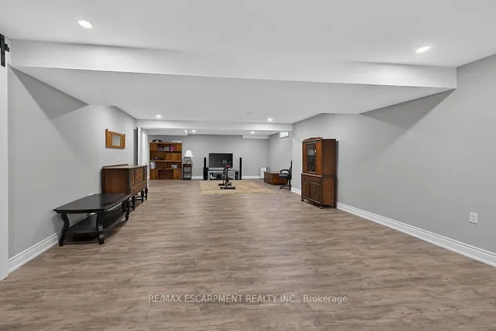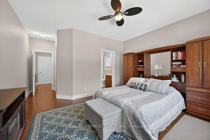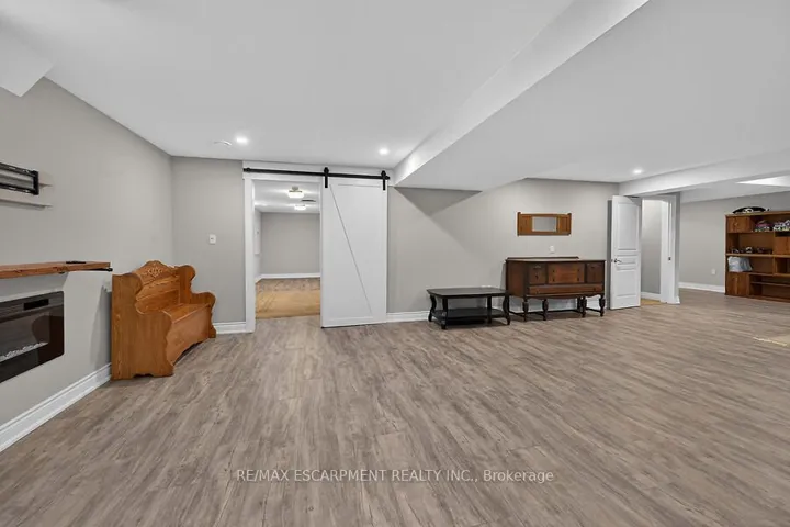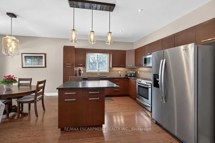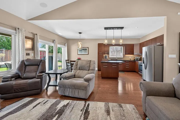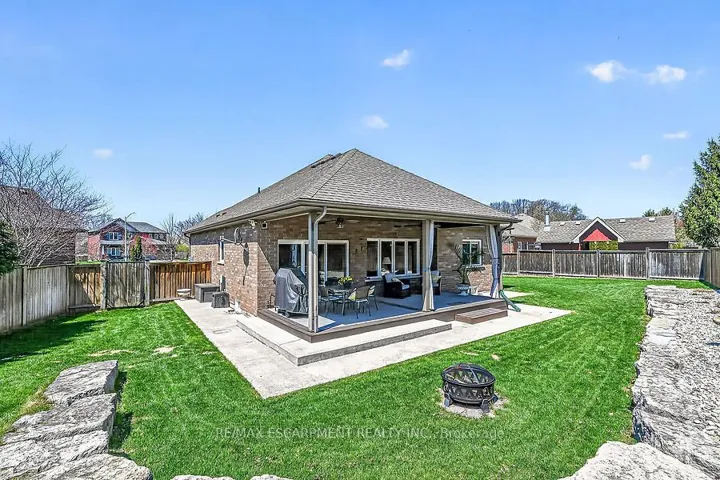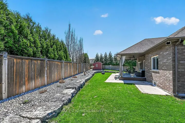 Welcome to this beautifully maintained bungalow in the quaint hamlet of Fenwick, just minutes to Fonthill and Niagara’s renowned wine country. Built in 2012, this all brick and stone home offers a layout with 3+1 bedrooms and 3 full bathrooms, set on a fully fenced lot in the exclusive enclave of Cherry Ridge Estates. A bright foyer welcomes you into the open-concept main floor featuring vaulted ceilings in the living room, hardwood flooring throughout, and a stylish kitchen complete with soft-close cabinetry, sandstone countertops, and a movable island. Sliding doors lead to a composite deck with a covered seating area (elongated roof line), perfect for outdoor entertaining. The primary bedroom includes a private ensuite and walk-in closet, while the main floor also offers a second full bath and laundry/mud room to the garage. The finished lower level boasts a spacious family games room ideal for gatherings or movie nights with electric fireplace, along with a den with storage and barn doors for added privacy, and separate 3 piece bath. With direct access from the utility room to the garage, the lower level offers excellent in-law suite potential. Bonus: oversized double car garage, landscaped yard with sprinkler system, and natural gas BBQ hookup and shed.