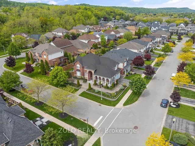 Located in the highly desirable Vineyard Valley neighborhood, this stunning 2-story built by the award-winning Marz Homes in 2004, offers over 4000 sqft of impressive living space. Greeted by a grand stone and brick facade, showcasing exceptional curb appeal with a charming wrap-around porch and beautifully landscaped stone flower beds. Step inside to discover an inviting foyer with soaring 18-ft ceilings and a striking crystal chandelier that sets a tone of sophistication. The great room features a 12-ft ceiling and oversized windows that flood the space with natural light. The rest of the main level boasts 9 ft ceilings, creating an airy and inviting atmosphere. Enjoy cozy evenings by the gas fireplace in the family room or host memorable dinners in the large formal dining room. The kitchen is equipped with a corner pantry. An adjoining breakfast area that flows into the living and onto the patio.Venture upstairs to find 3 generous bedrooms, each with a walk-in closet, and a bright loft that overlooks the foyer, which could easily be converted into a 4th bedroom. The primary bedroom features a vaulted ceiling, while the ensuite boasts double sinks, a corner tub, and a separate shower. A 2nd bath and a conveniently located laundry room complete the upper floor.The basement offers in-law potential with a separate entrance from the garage. It features a spacious rec room with a fireplace, a spare bedroom, and roughed-in bath and wet bar. Step outside to your private, fully fenced yard, which includes a double gazebo covered concrete patio, and a garden area perfect for relaxation.Freshly painted, central vac and 2018 steel roof from Metstar. This prime location provides easy access to farmers markets, Lake Ontario, and a wealth of parks and walking trails. Explore nearby restaurants and charming towns along the Niagara Escarpment. Families will appreciate the proximity to the YMCA, schools and hospitals, with a quick drive to downtown and just a minute to the QEW.
