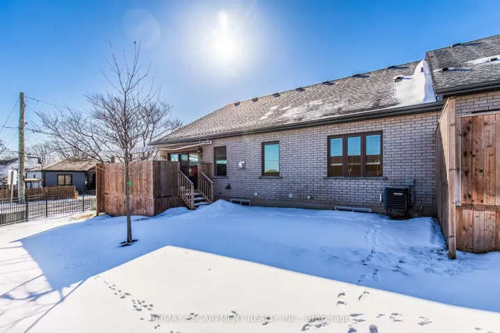 Rarely offered bungalow townhouse in a sought-after Niagara Falls community. This beautifully designed and fully upgraded 3 bedroom, 3 bathroom home, built in 2020, sits on a desirable corner lot and offers over 3,300sqft of finished living space. Featuring a double car garage and a bright open concept layout, the home showcases 9ft ceilings on the main level and impressive 10ft ceilings in the fully finished basement. Upgrades throughout include pot lights, carpet-free flooring, hardwood stairs leading to the basement, and a modern kitchen featuring stone countertops and modern plumbing fixtures. Enjoy your backyard from your 10ft x 12ft wood deck! Located in the desirable Stamford area of Niagara Falls, close to parks, schools, shopping and recreation, and just a short drive to world-class attractions, dining and entertainment.