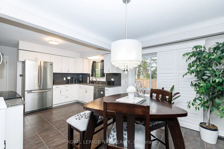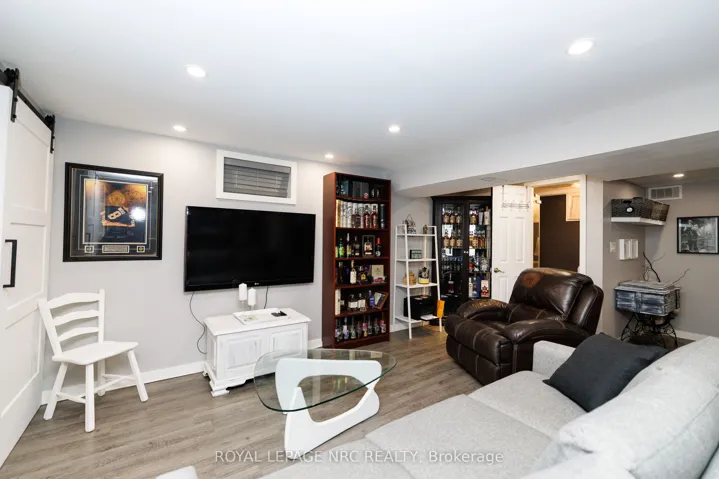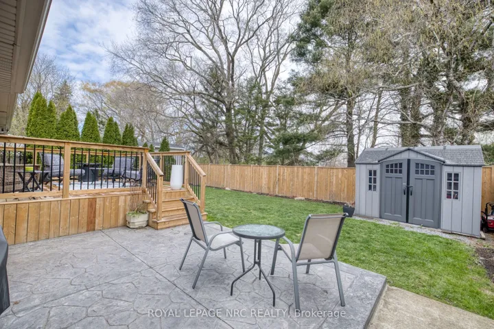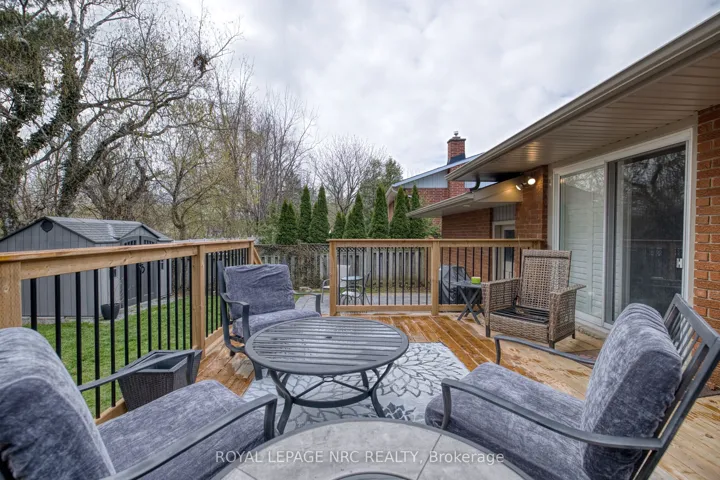 Welcome to 24 O’Mara Drive! The first thing we notice when outside is the curb appeal! Located in the North End of St. Catharines, this home is located in a quiet neighbourhood and backs onto a ravine! It offers a double private driveway with ample parking, as well as a single attached garage. Lets step inside and explore! To our right, is the living room with bay window, hearth and gas fireplace. Past that, we step into the spacious eat-in kitchen with tile floor and stainless steel appliances! As we go down the hallway, we reach the bedrooms. The first one is a good sized primary bedroom with double closet. Two more well sized bedrooms can be found on this level, both with a single closet. An attractive 4-piece bathroom with updated vanity (2025) services this level. We head downstairs to take a look in the basement! Here we find the laundry room, with sink, and convenient counter top for easy folding laundry. The recreation room offers a dry bar set up for social gatherings! The basement offers two good sized bedrooms, one of which has an electric fireplace. A fruit cellar for convenient storage and a 3-piece bathroom can also be found here. Last, but certainly not least, is the backyard. A large and attractive wooden deck was installed in 2024. THE perfect spot to summer! The yard also offers a good sized concrete patio (2024). The fence was partially replaced in 2024 as well. Some updates include: California shutters (2019), dishwasher and microwave (2025), washer & dryer (2021), basement bathroom renovation (2019), basement sump pump (2025), laundry room (2025).